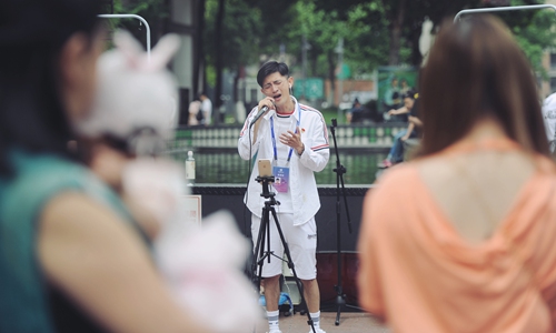 "I really like singing on the street. I feel much more relaxed compared to singing on TV. I sometimes lose track of time when putting my all in a performance," Chen said, noting that one of the most rememberable signs he was doing well was when the audience gave him a total of eight bottles of water during a show.