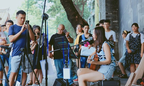 Du Jingping, better known as Du Yuanqi, is one of the first batch of street artists in Chengdu. She told the Global Times on Thursday that she often changes her songs depending on the day's weather or the theme of some public holidays.