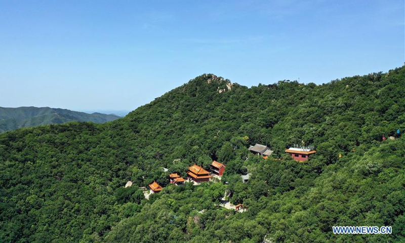 Aerial photo taken on June 5, 2020 shows a view of the Panshan Mountain scenic resort in Jizhou District, north China's Tianjin. The lush green scenic resort has attracted tourists with its marvelous scenery recently. (Xinhua/Ma Ping)
