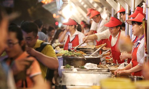 Residents enjoy snacks at Beijing's Donghuamen night market before it was closed in June 2016. Photo: VCG