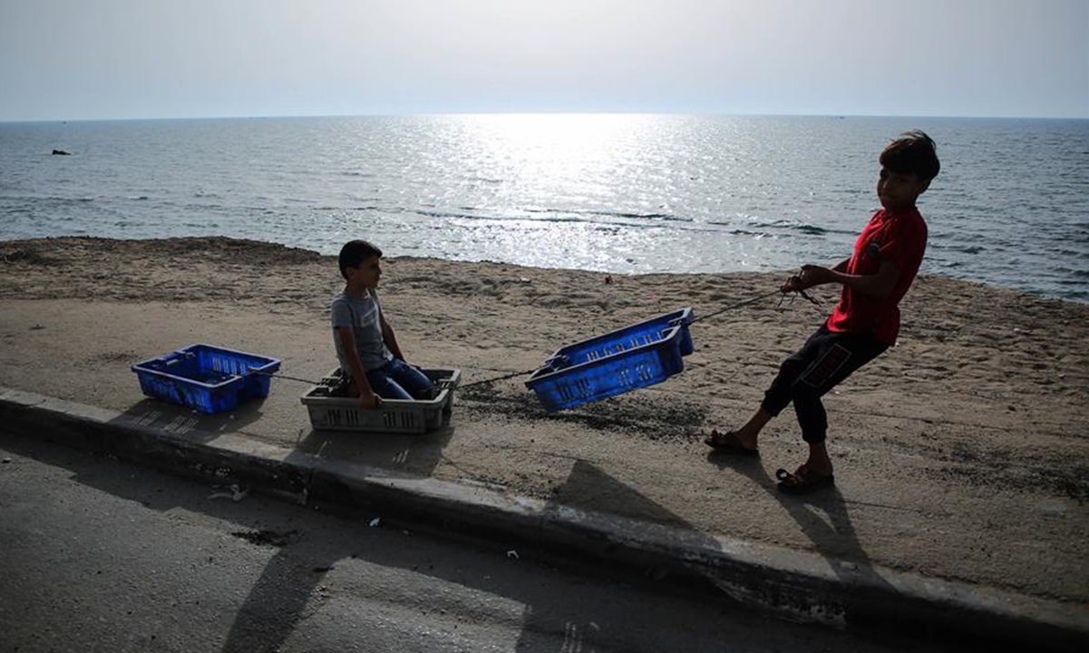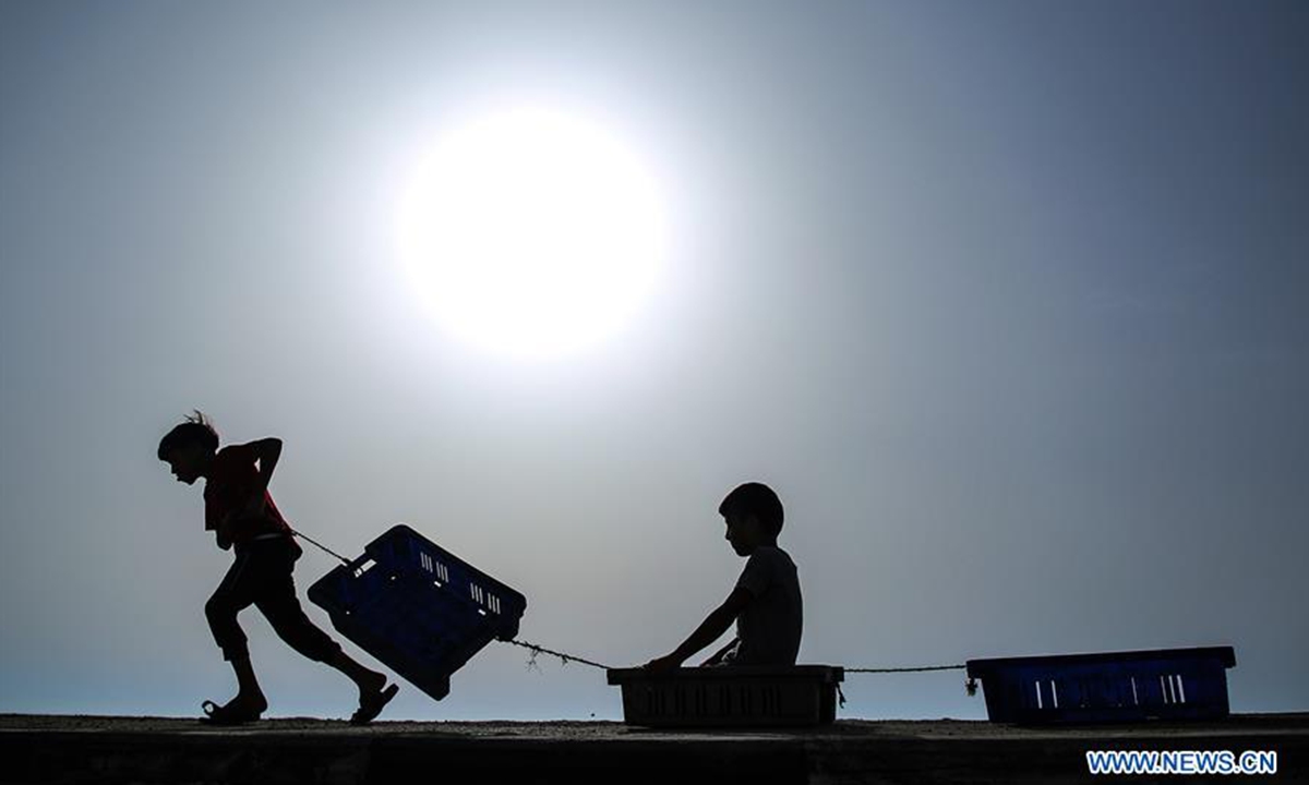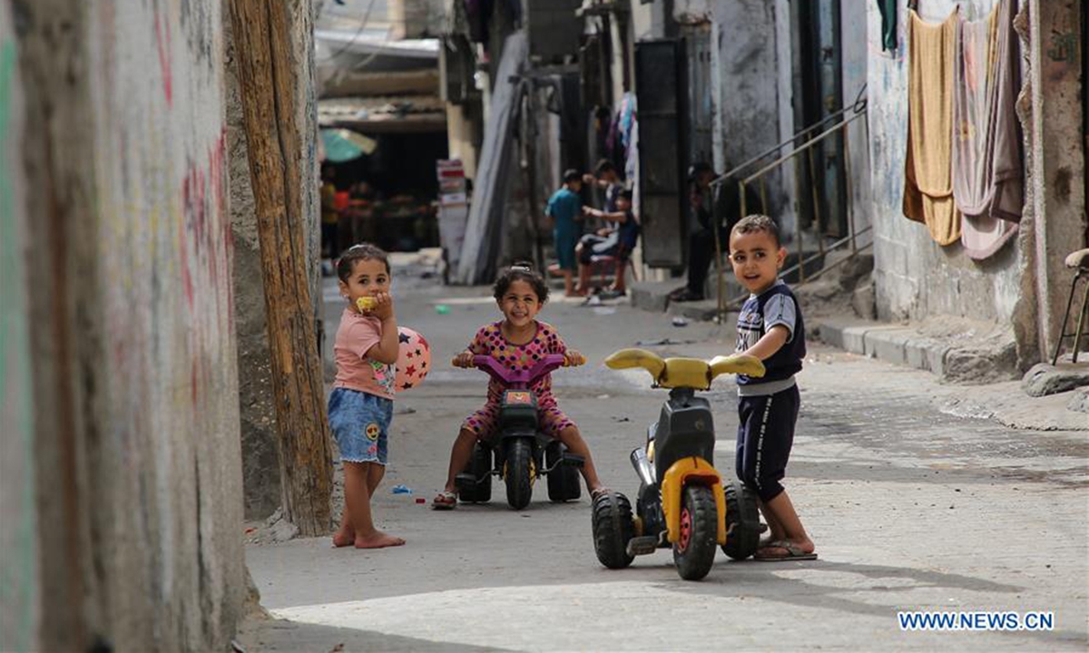 Palestinian children play in the Shati refugee camp in Gaza City, June 7, 2020. (Photo by Rizek Abdeljawad/Xinhua)