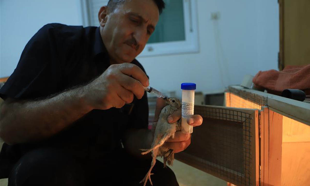 Palestinian Yousif Nassar checks a Palestinian partridge chick at his house in the West Bank city of Hebron, June 7, 2020. Nassar, 50, has collected eggs of the Palestinian partridge from private farms and put them in incubators. He will release the birds when they become able to fly. Nassar has been doing this as a self-initiative to keep the Palestinian partridges from extinction. (Photo by Mamoun Wazwaz/Xinhua)