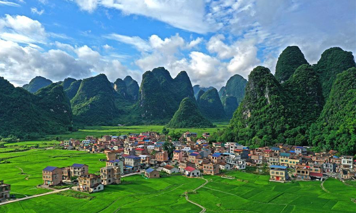 Aerial photo taken on May 22, 2020 shows a view of Xia'nan Township in Huanjiang Maonan Autonomous County, south China's Guangxi Zhuang Autonomous Region.
