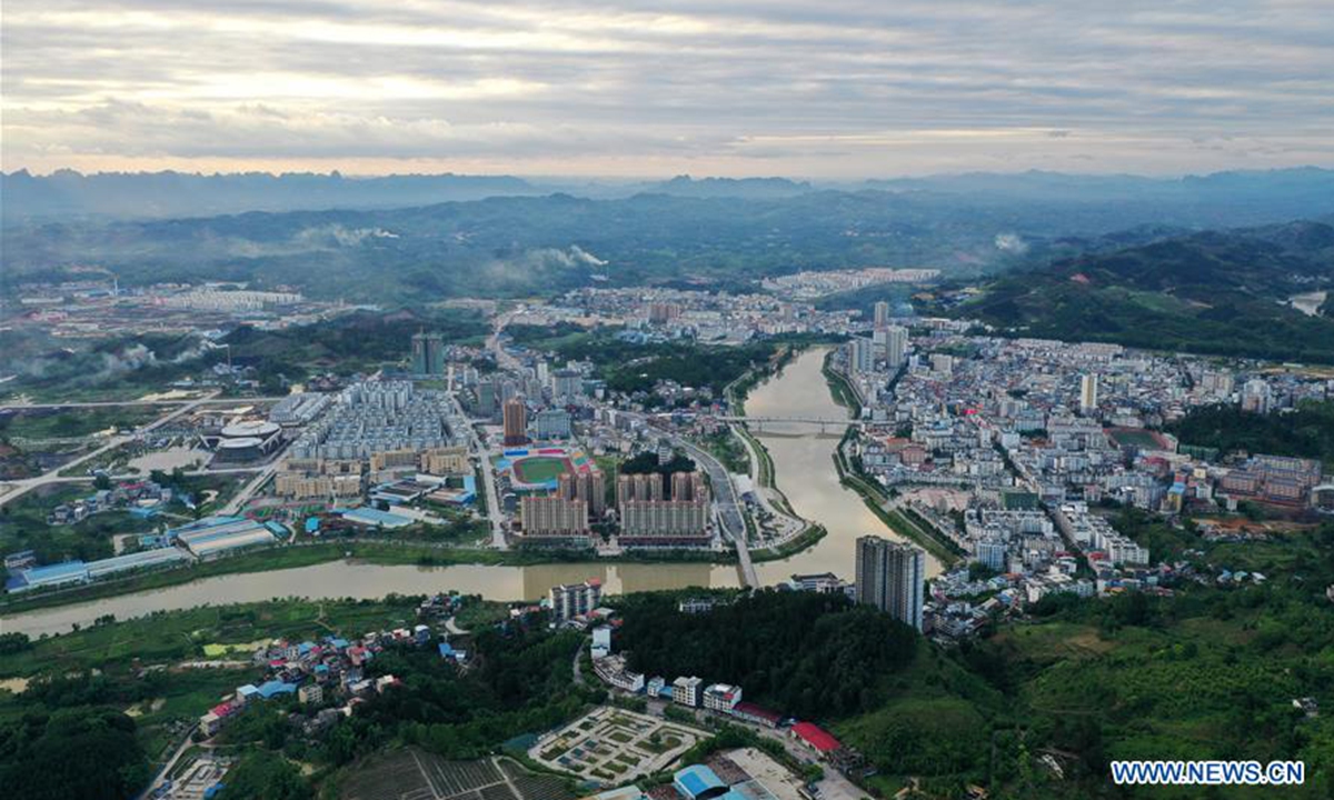 Aerial photo taken on May 25, 2020 shows a view of Huanjiang Maonan Autonomous County, south China's Guangxi Zhuang Autonomous Region.