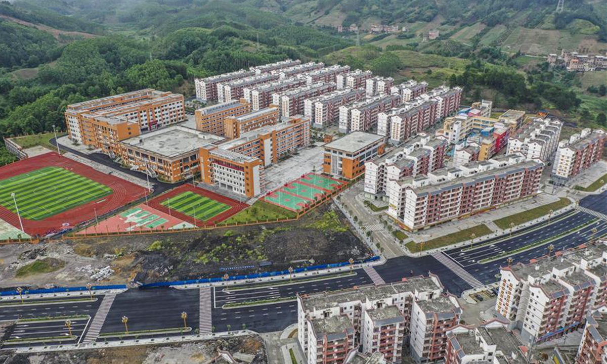 Aerial photo taken on May 21, 2020 shows a view of a school near a poverty-relief relocation site in Huanjiang Maonan Autonomous County, south China's Guangxi Zhuang Autonomous Region.