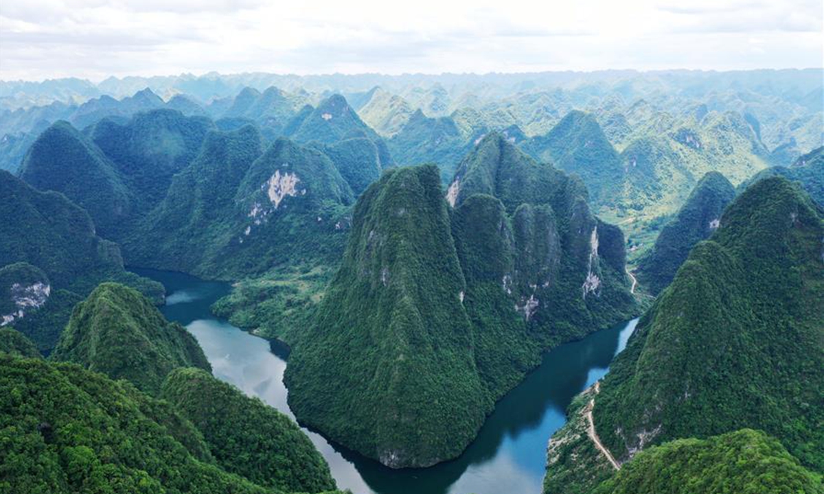 Aerial photo taken on May 22, 2020 shows a view of Dagou River in Xia'nan Township of Huanjiang Maonan Autonomous County, south China's Guangxi Zhuang Autonomous Region.