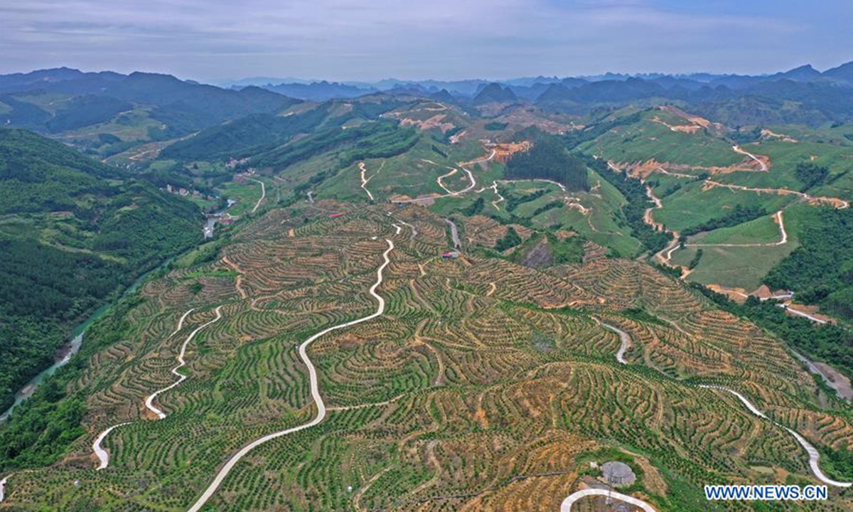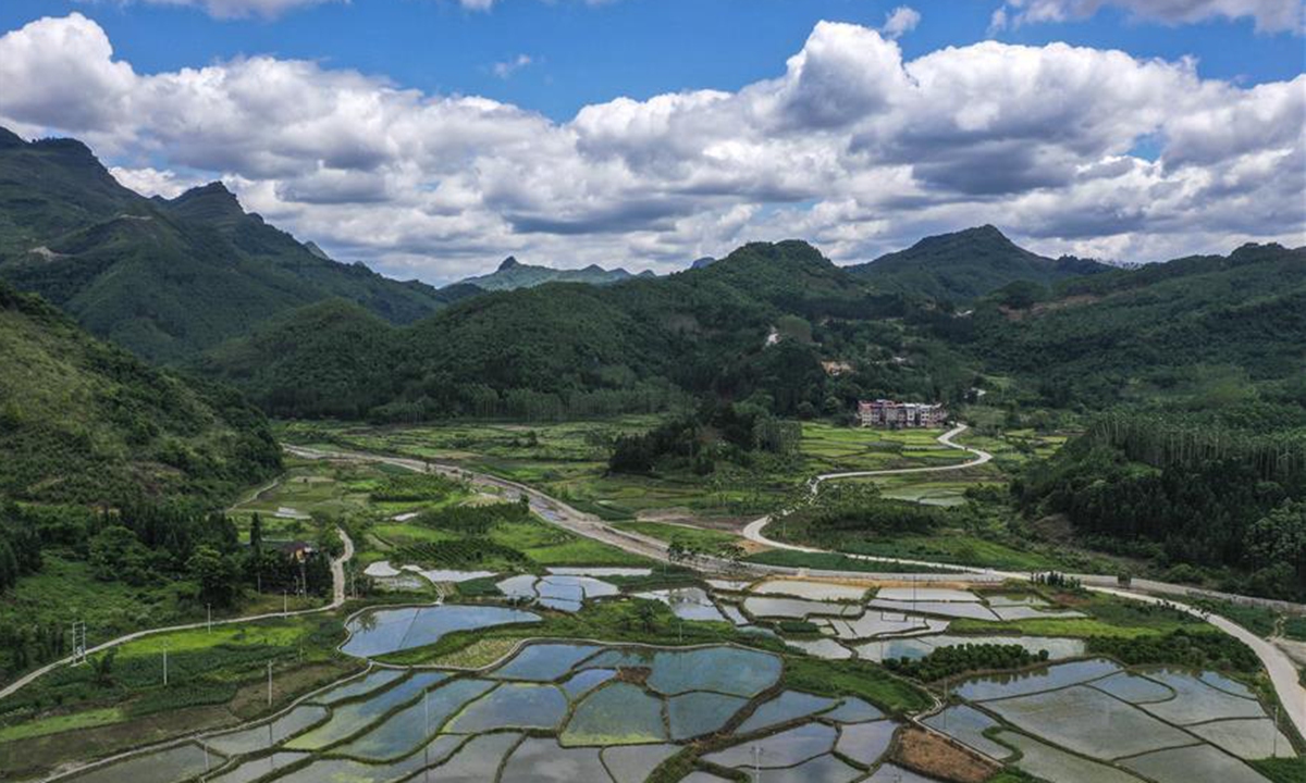 Aerial photo taken on May 22, 2020 shows a view of fields at Wenya Village of Luoyang Township in Huanjiang Maonan Autonomous County, south China's Guangxi Zhuang Autonomous Region.