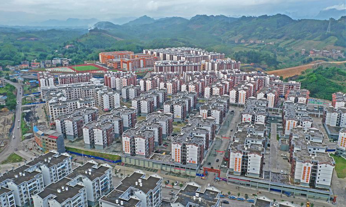 Aerial photo taken on May 21, 2020 shows a view of a poverty-relief relocation site in Huanjiang Maonan Autonomous County, south China's Guangxi Zhuang Autonomous Region.