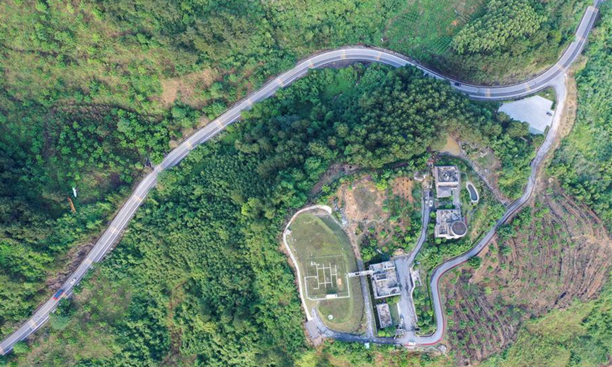Aerial photo taken on May 25, 2020 shows a rural road in Huanjiang Maonan Autonomous County, south China's Guangxi Zhuang Autonomous Region.