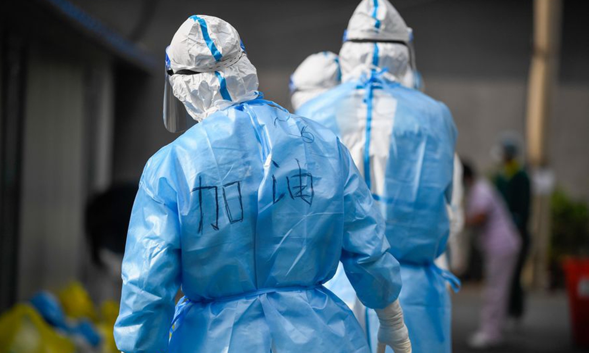 Medical workers wait to submit COVID-19 samples for nucleic acid test at the center for disease control and prevention in Fengman District of Jilin City, northeast China's Jilin Province, May 17, 2020. (Xinhua/Yan Linyun)