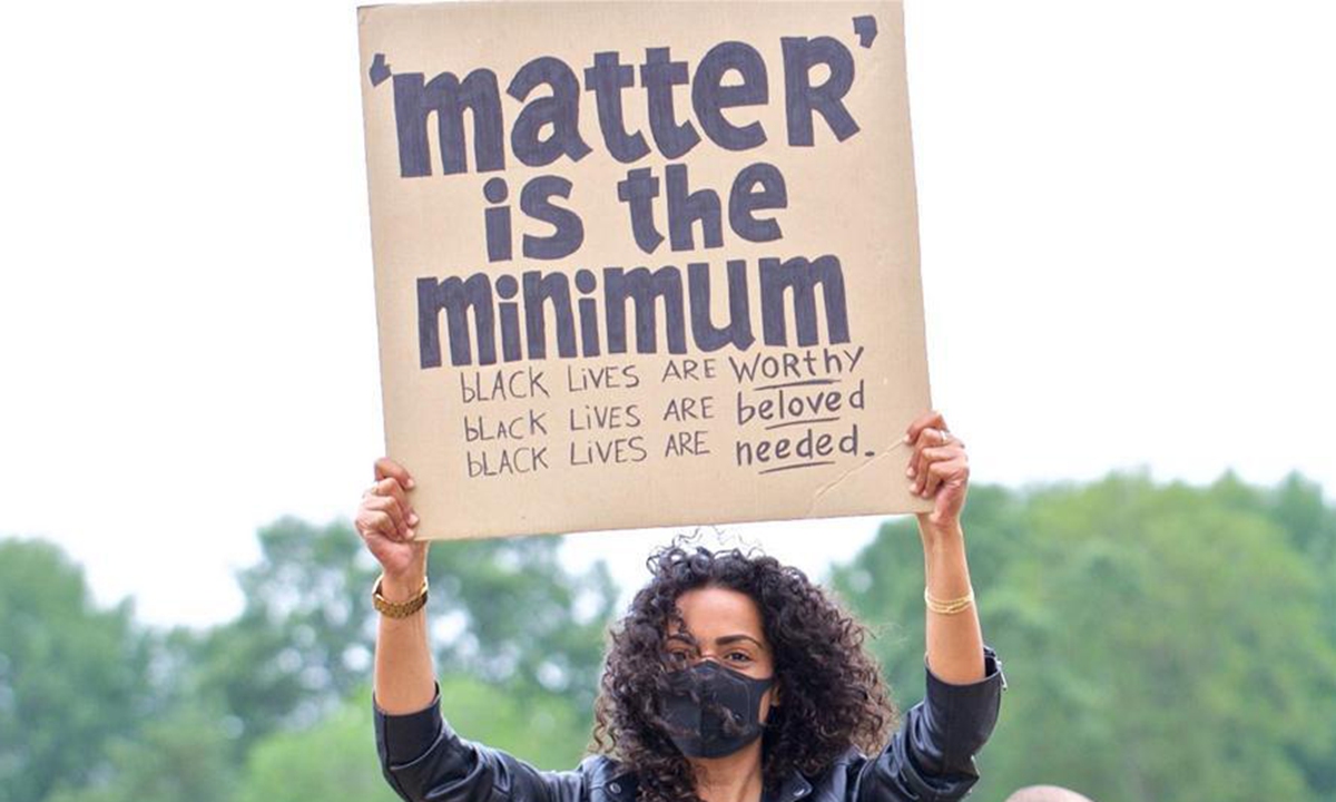 A woman participates in a protest against racism in Amsterdam, the Netherlands, June 10, 2020. (Photo by Sylvia Lederer/Xinhua)