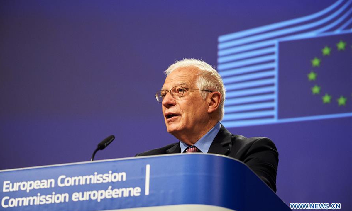 Josep Borrell, High Representative of the European Union (EU) for Foreign Affairs and Security Policy, speaks at a press conference after a meeting of European Commissioners in Brussels, Belgium, on June 10, 2020. The European Commission will later this week put forward an approach for the gradual and partial lifting of the Schengen zone's external travel restrictions as of July 1 with certain third countries, Josep Borrell, High Representative of the European Union (EU) for Foreign Affairs and Security Policy, said here on Wednesday. (European Union/Handout via Xinhua)