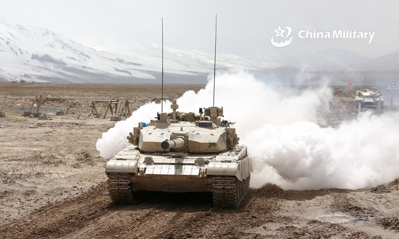Type-99 main battle tanks (MBTs) attached to a brigade under the PLA 76th Group Army rumble through man-made obstacles as they infiltrate into the mock enemy positions on June 4.Photo:China Military