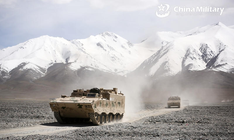 Infantry fighting vehicles attached to a brigade under the PLA 76th Group Army muster and rumble to a designated training field in the snow-covered plateau area on June 4.Photo:China Military