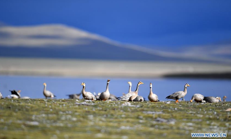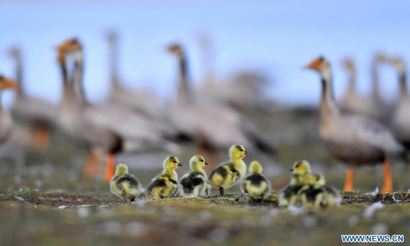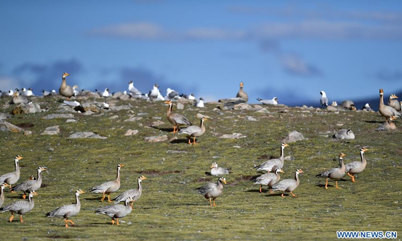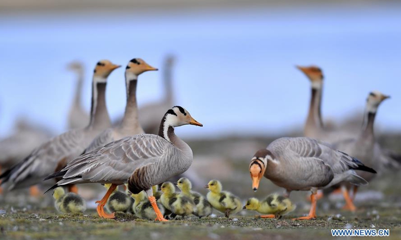 Photo taken on June 9, 2020 shows bar-headed geese at a bird island in Amdo County, southwest China's Tibet Autonomous Region.Photo:Xinhua