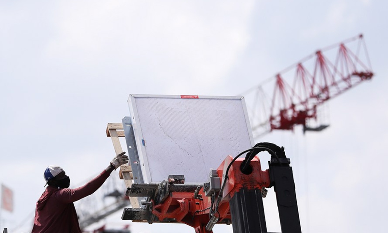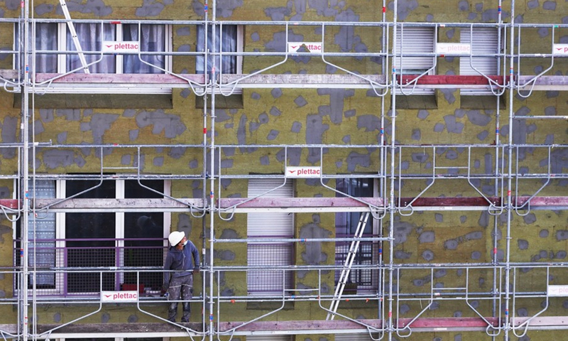 A worker works at a construction site in Clichy, near Paris, France, June 11, 2020. (Xinhua/Gao Jing)