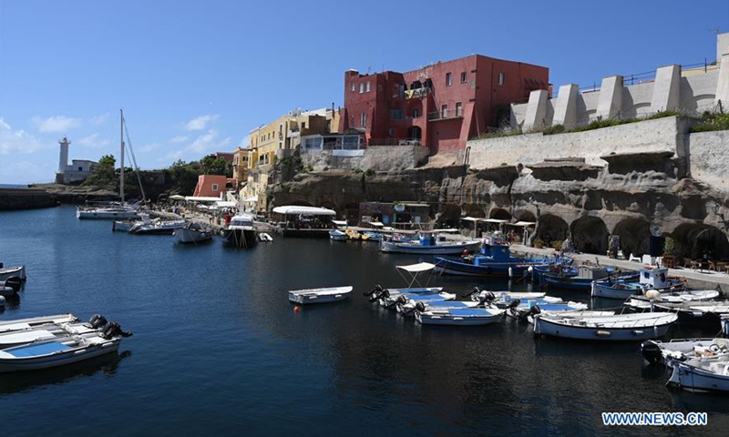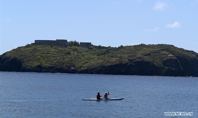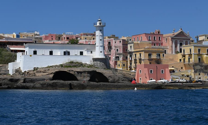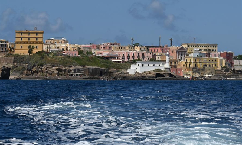 Photo taken on June 14, 2020 shows a view of Ventotene Island in Lazio, Italy. Ventotene Island is one of the Pontine Islands of Italy. It is the remains of an ancient volcano. (Photo by Alberto Lingria/Xinhua)