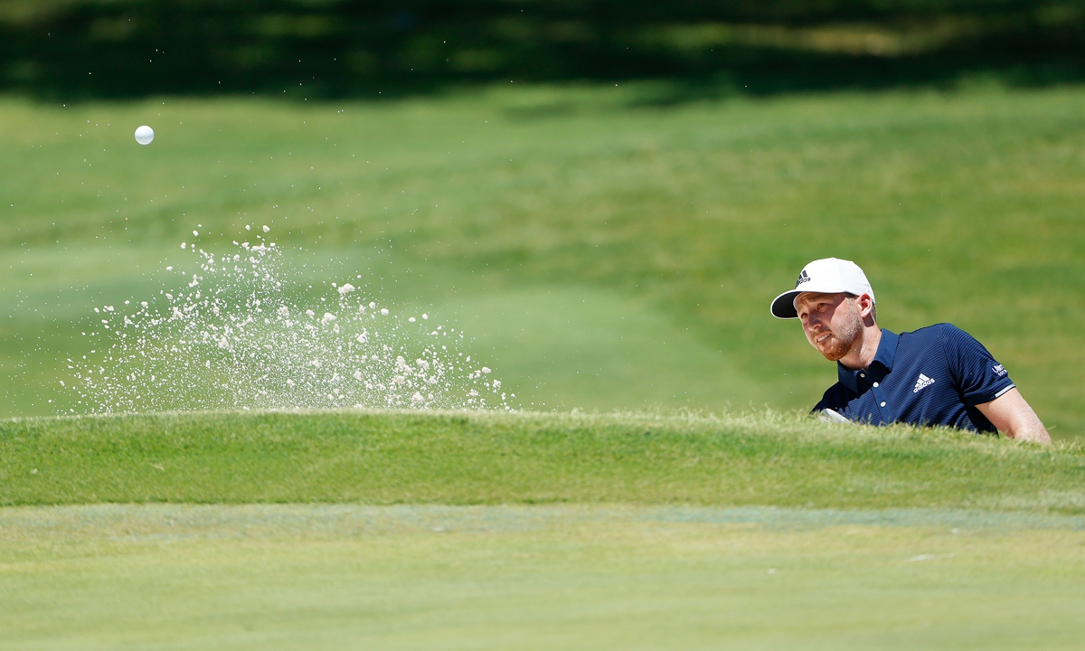 Daniel Berger plays a shot from a bunker during the final round of the Charles Schwab Challenge on Sunday in Fort Worth, Texas. Photo: AFP
