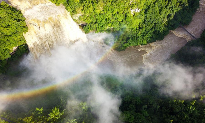 Aerial photo taken on June 14, 2020 shows a view of the Huangguoshu Waterfall in Anshun, southwest China's Guizhou Province. (Xinhua/Yang Wenbin)