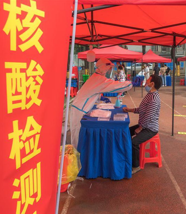 Residents take nucleic acid tests at a testing post set up at a primary school in Dongxihu District in Wuhan, central China's Hubei Province, May 15, 2020. Wuhan will arrange nucleic acid tests for all residents who have not been tested before, in order to better know the number of asymptomatic cases of the novel coronavirus. The decision was made as the virus-ravaged city continued to report daily increases of asymptomatic infections, which raised concerns among the public.Photo:Xinhua