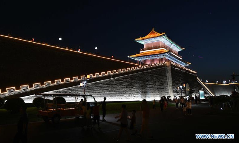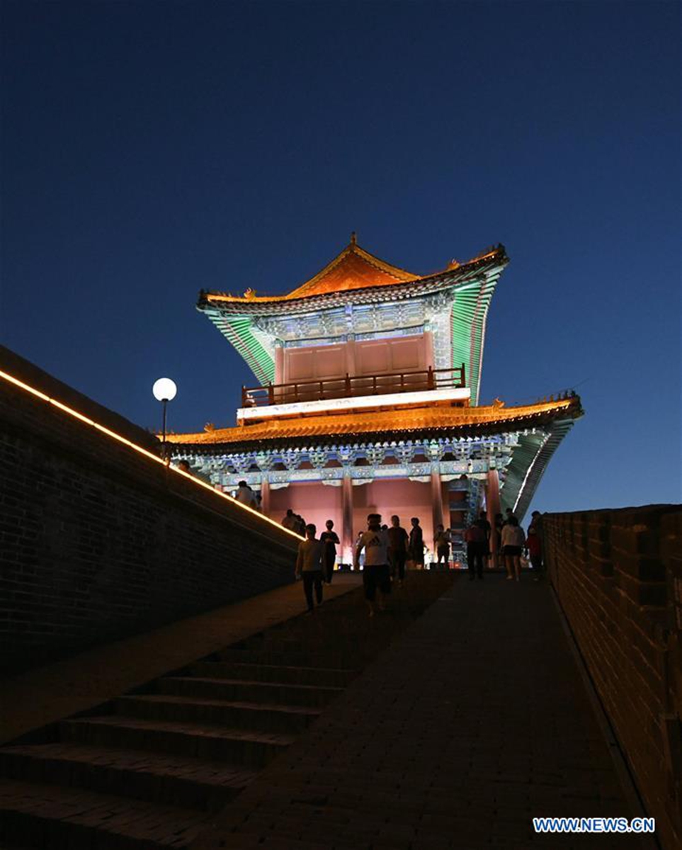 Photo taken on June 14, 2020 shows an installation art illuminated at night in the Zhengding ancient town in Shijiazhuang, north China's Hebei Province. (Photo by Xu Jianyuan/Xinhua)