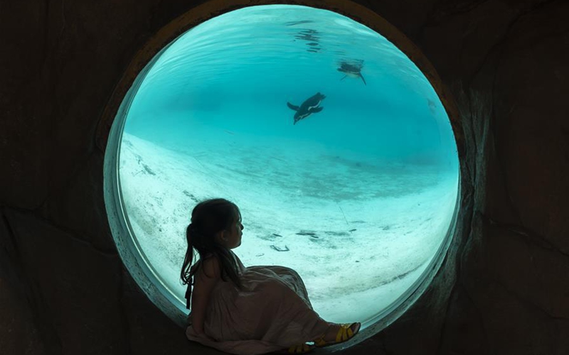 A girl looks at penguins through an underwater viewer at ZSL (the Zoological Society of London) London Zoo on the first day of its reopening since lockdown restrictions eased in London, Britain on June 15, 2020. As non-essential stores reopened and more students headed back to schools in England on Monday for the first time in almost three-months, zoos and safari parks across the country were also allowed to reopen Monday. (Xinhua/Han Yan)