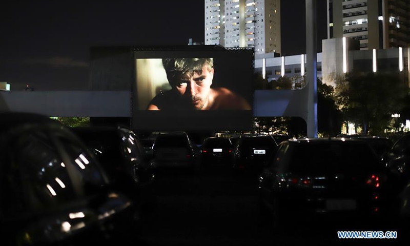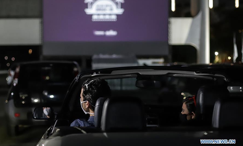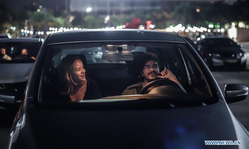 People watch a movie inside their cars at a drive-in cinema amid the COVID-19 outbreak in Sao Paulo, Brazil, on June 17, 2020. (Xinhua/Rahel Patrasso)
