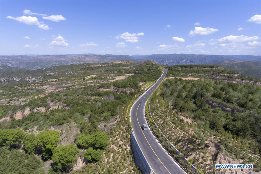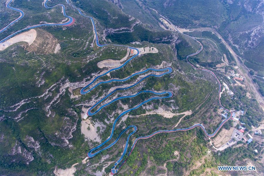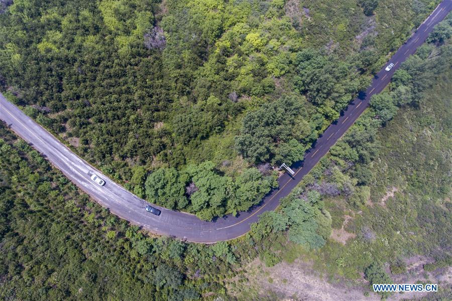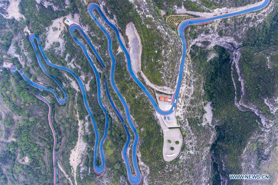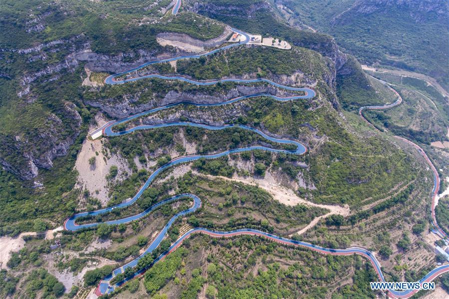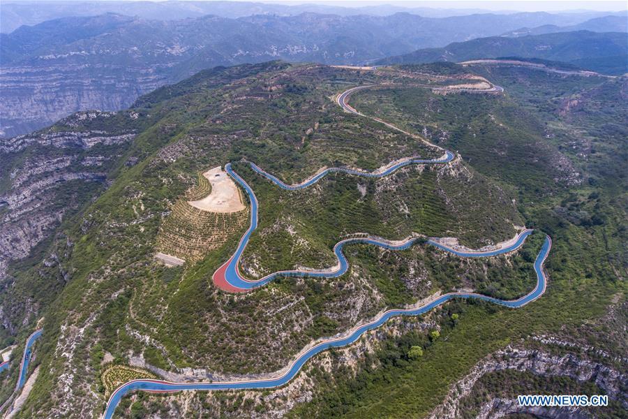 Aerial photo taken on June 18, 2020 shows a winding tourism road in Taiyuan City, north China's Shanxi Province. In recent years, Taiyuan City has been making efforts on building tourism roads which not only link scenic spots but also help boost incomes of villagers along the ways. (Xinhua/Yang Chenguang)