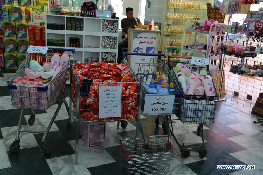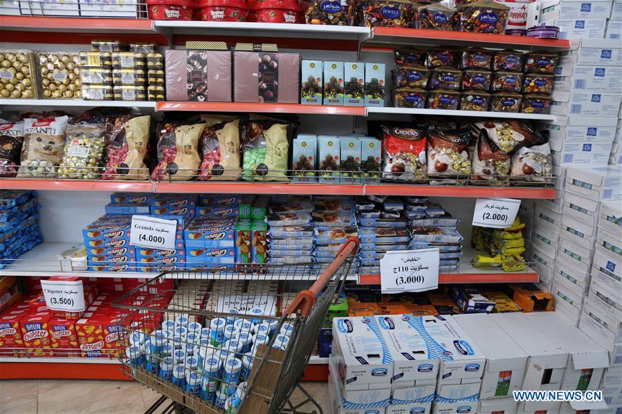 Goods are marked with new prices at a supermarket in Tripoli, Libya, on June 16, 2020. The decrease in the flow of foods across Libyan borders with Egypt and Tunisia has led to increase of prices in the country. The prices of some goods have gone up by 50 percent or even doubled or tripled since March. As a precautionary measure against the COVID-19 pandemic, Libyan authorities closed all the country's borders in March. (Photo by Mohamed Arhoma/Xinhua)