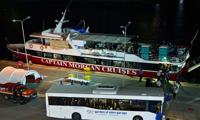 Migrants disembark at Boiler Wharf in Senglea, Malta, on June 6, 2020. Malta decided on Saturday night to allow the disembarkation of around 425 migrants who spent more than a month at sea while the country was waiting for solidarity from other European states. (Photo by Jonathan Borg/Xinhua)