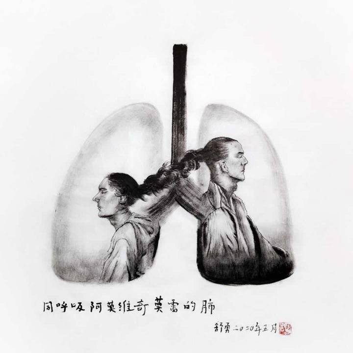Tribute to Heroes seeks to remember the medical staff and ordinary people who had contributed to the fight against the novel coronavirus. The exhibition features 149 water ink paintings as well as an oil painting of Shu's signature installation work The