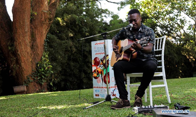 Ugandan music artist Herbert Ssensamba performs during an online concert to mark the World Music Day in Kampala, Uganda, on June 21, 2020. As a measure to contain the spread of COVID-19, all major events including concerts and music shows were canceled to enforce and promote social distancing in Uganda. (Photo by Hajarah Nalwadda/Xinhua)