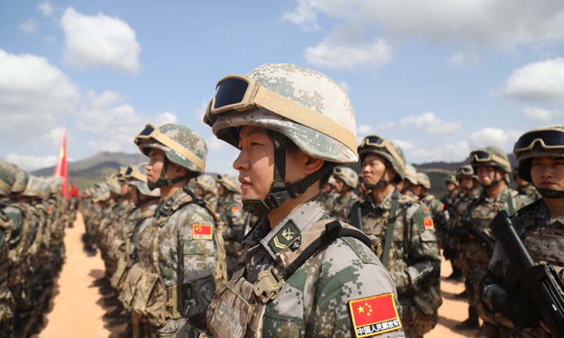People's Liberation Army soldiers attend the opening ceremony of the joint training at a military training field in Cambodia's Kampot province, on March 15, 2020. [Photo/Xinhua]