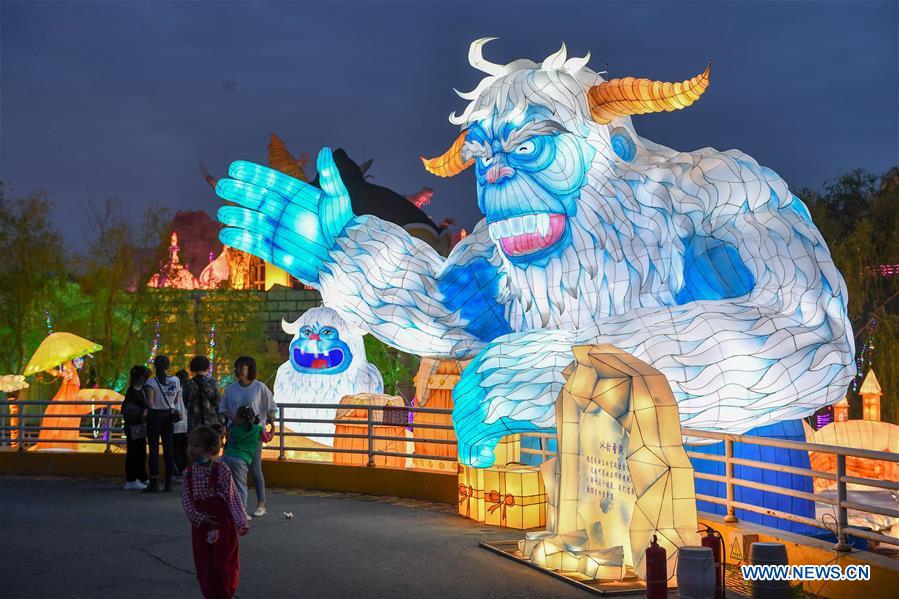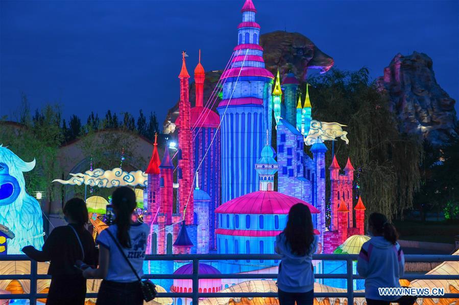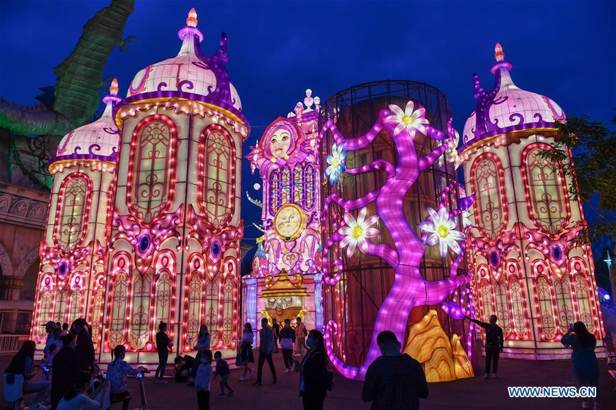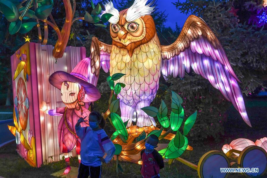 People enjoy a lantern show held at the Changying Century City in Changchun, capital of northeast China's Jilin Province, June 26, 2020. Colourful lanterns were lit up at the Changying Century City during the Dragon Boat Festival national holiday. (Xinhua/Zhang Nan)