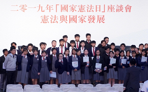 Students pose for photos after attending a National Constitution Day symposium at the Hong Kong Convention and Exhibition Centre in 2019. Professors from the mainland and HK universities, members from the Standing Committee of the National People's Congress were invited to speak. Photo: VCG