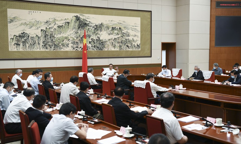 Chinese Premier Li Keqiang, also a member of the Standing Committee of the Political Bureau of the Communist Party of China Central Committee, presides over a symposium on stabilizing foreign trade and investment in Beijing, capital of China, June 28, 2020. (Xinhua/Xie Huanchi)