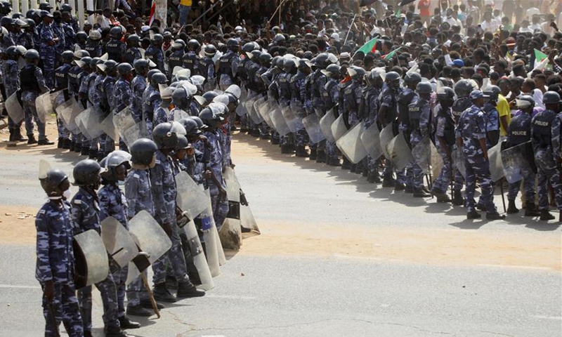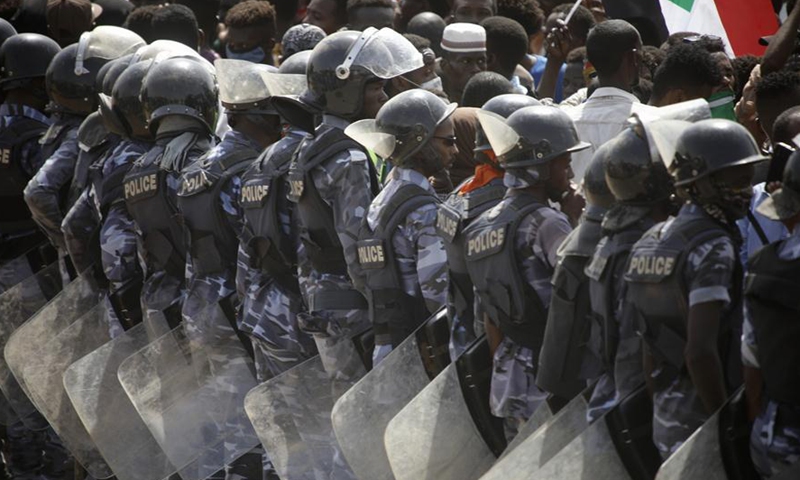 Policemen confront protesters during a demonstration in Khartoum, Sudan, June 30, 2020. Tens of thousands of Sudanese protesters on Tuesday demonstrated in Khartoum and other cities, demanding for political reforms and democratic transformation. (Photo by Mohamed Khidir/Xinhua)