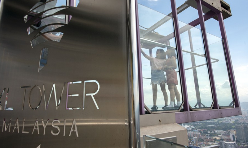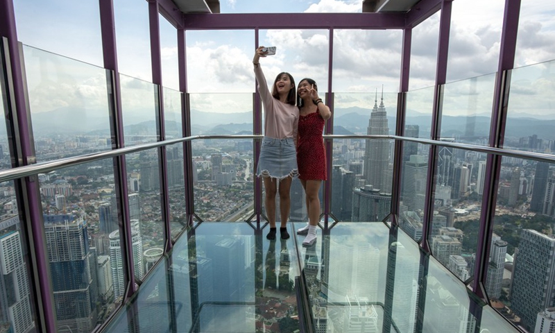 People take a selfie on the Kuala Lumpur Tower in Kuala Lumpur, Malaysia, July 1, 2020. (Photo by Chong Voon Chung/Xinhua)