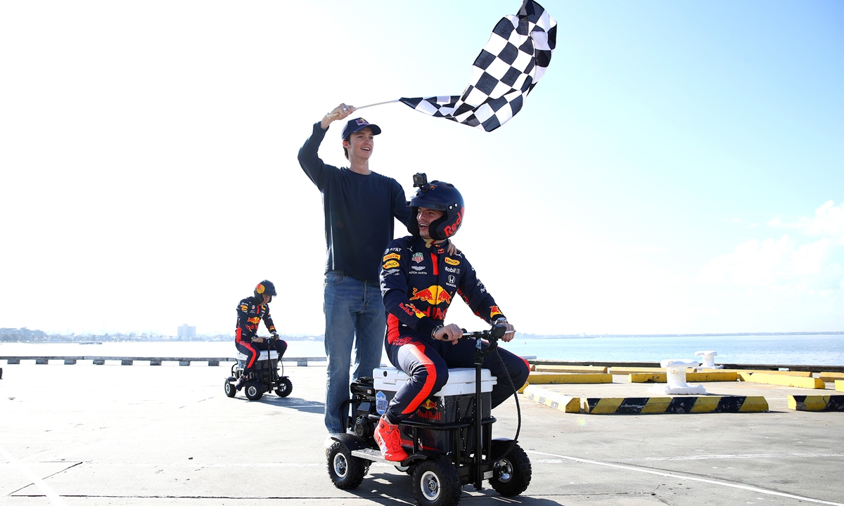 Max Verstappen (right) celebrates victory during the Aston Martin Red Bull Racing Cooler Runnings event on March 11 in Melbourne, Australia. Photo: VCG