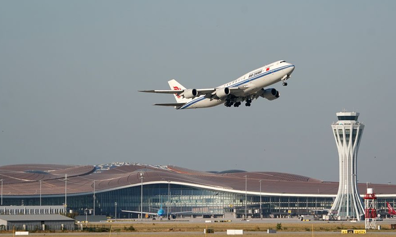 Air China flight CA9597 takes off at the Daxing International Airport in Beijing, capital of China, Sept. 25, 2019. Photo:Xinhua