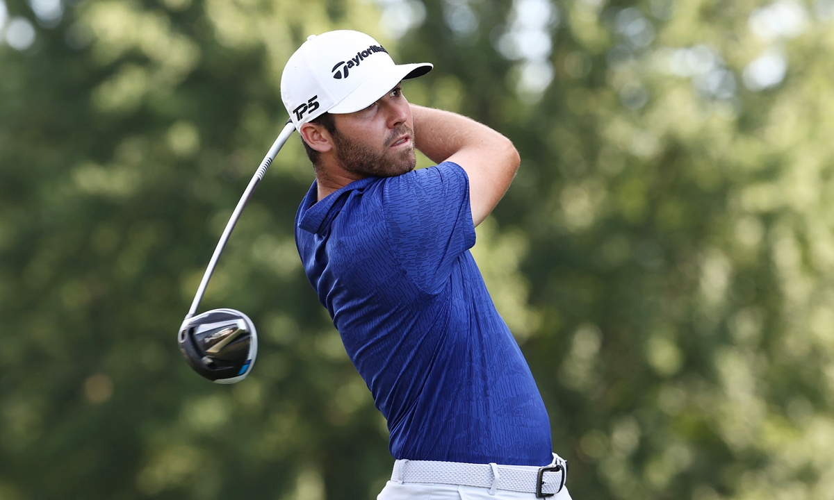 Matthew Wolff plays his shot from the 17th tee during the third round of the Rocket Mortgage Classic on Saturday in Detroit, Michigan. Photo: VCG