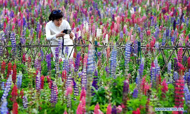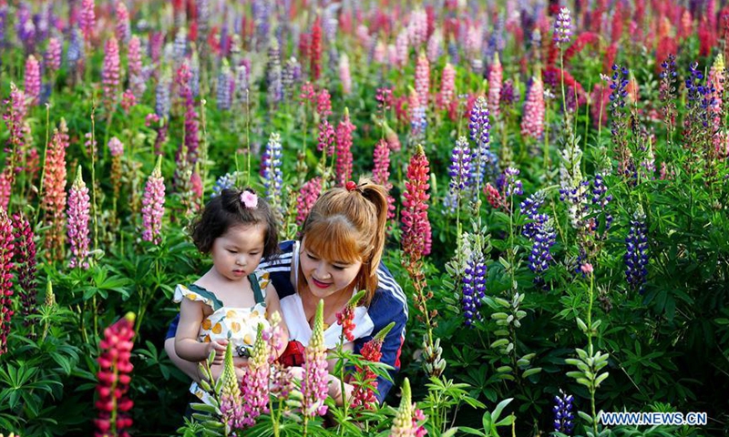 People visit the Lupin flower industrial park in Qilichuan Village, Taibai County of northwest China's Shaanxi Province, July 4, 2020. (Xinhua/Liu Xiao)