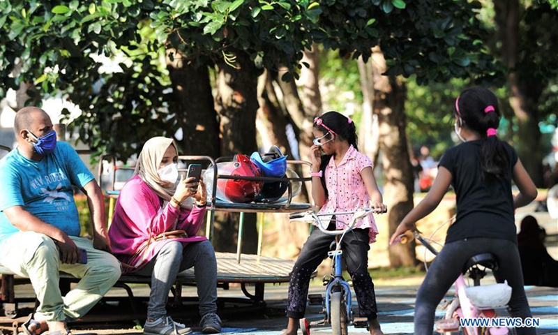 Two girls ride bikes in Viharamahadevi Park in Colombo, Sri Lanka, June 5, 2020. The Viharamahadevi Park has attracted many citizens during the weekend. All national parks, zoos and botanical gardens in Sri Lanka reopened to public on June 15 after being shut since late March due to the COVID-19 pandemic. (Xinhua/Tang Lu)