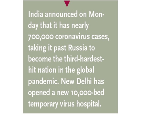 The Indian government has gradually lifted virus restrictions to help the battered economy, but the number of cases has continued to climb, with 24,000 reported in 24 hours to take the total to nearly 700,000 on Monday.