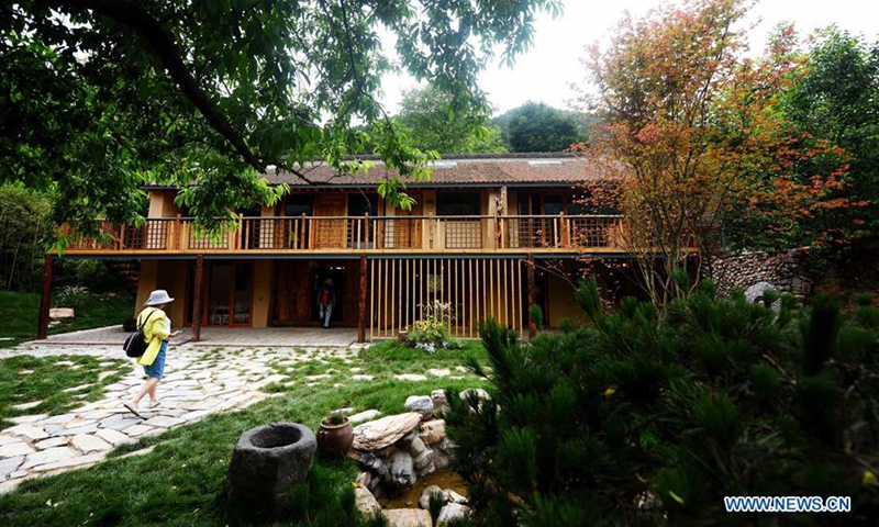 A woman visits a homestay about to open in Baiyun Village, Taibai County of northwest China's Shaanxi Province, July 5, 2020. Baiyun Village, located in the deep of the Qinling Mountains, had long been a underdeveloped area with people living in poverty. In recent years, by promoting rural tourism and agricultural products, the village has lifted all of its people out of poverty. (Xinhua/Liu Xiao)