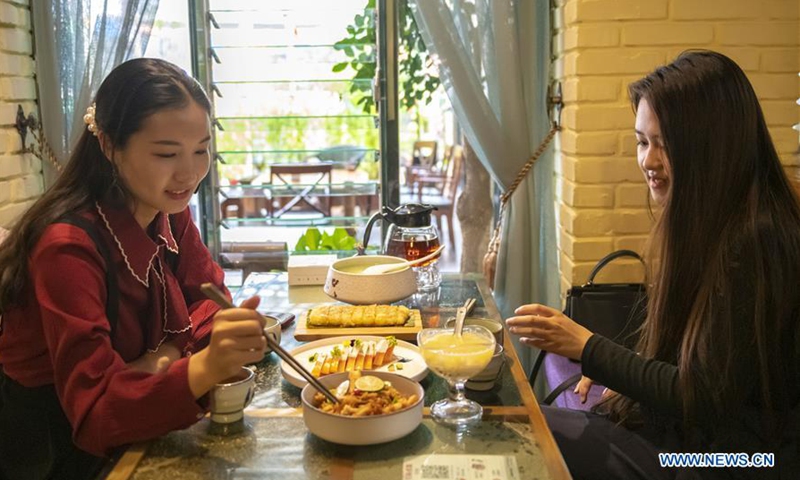 Customers dine at a vegetarian restaurant in Kunming, southwest China's Yunnan Province, June 14, 2020. (Xinhua/Chen Xinbo)