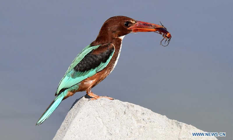 A white-throated kingfisher catches an insect at a beach in Kuwait City, Kuwait, July 7, 2020. (Photo by Ghazy Qaffaf/Xinhua)