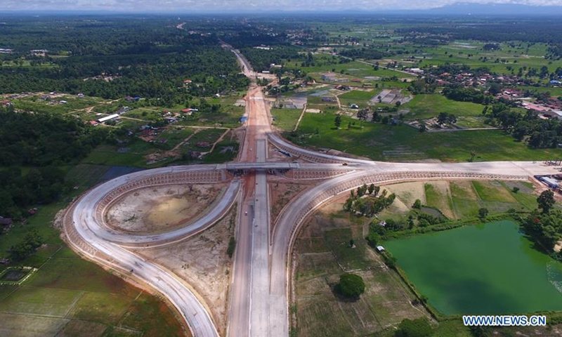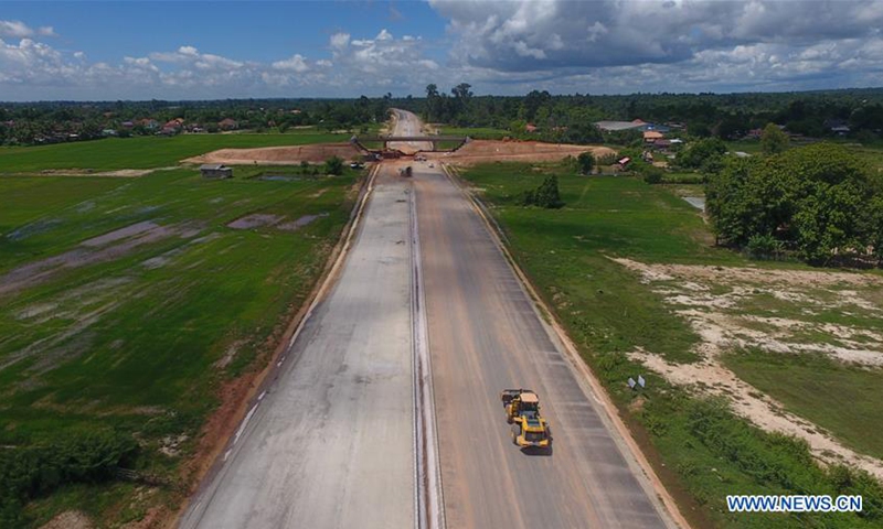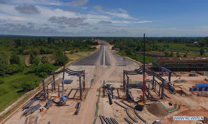 Aerial photo taken on July 6, 2020 shows the Vientiane to Vangvieng section of China-Laos expressway under construction in Vientiane, Laos. China-Laos expressway is co-developed by China Yunnan Construction and Investment Holding Group (YCIH) and the Lao Ministry of Planning and Investment. The under-construction Vientiane to Vangvieng expressway stretches 109.1 km. The four-lane highway will save the tour from Vientiane to Vangvieng for 2.5 hours after completion, with only 1.5 hours drive. (Photo by Liu Ailun/Xinhua)