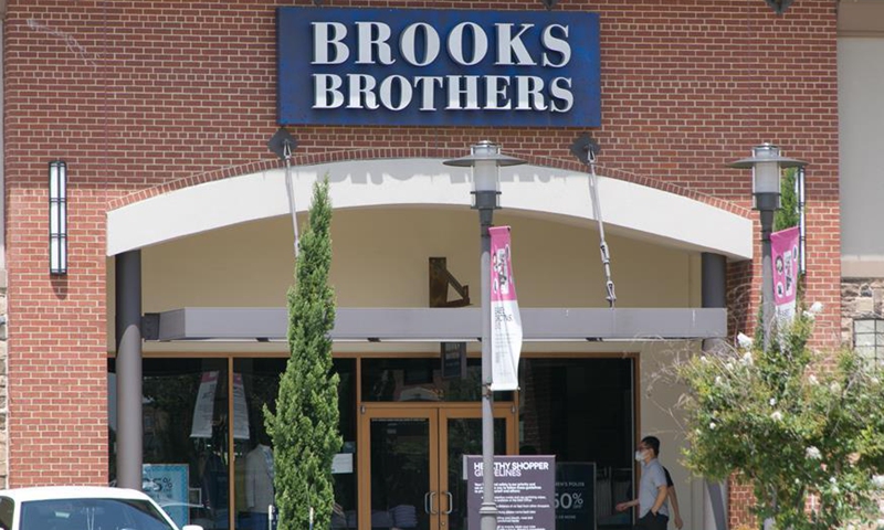 A Brooks Brothers store is seen in Allen, Texas, the United States, on July 8, 2020. Brooks Brothers, one of the oldest apparel retailers in the United States, filed for bankruptcy protection on Wednesday, as the coronavirus pandemic continues to impact businesses. (Photo by Dan Tian/Xinhua)
