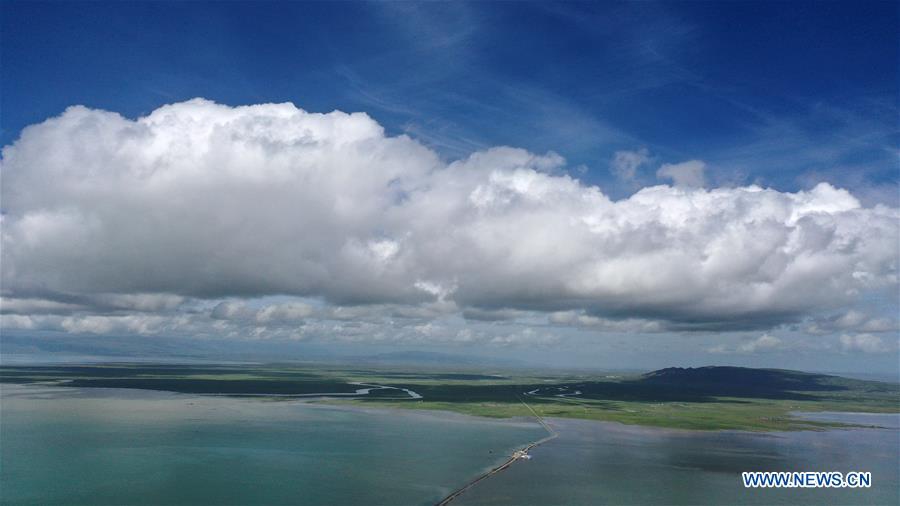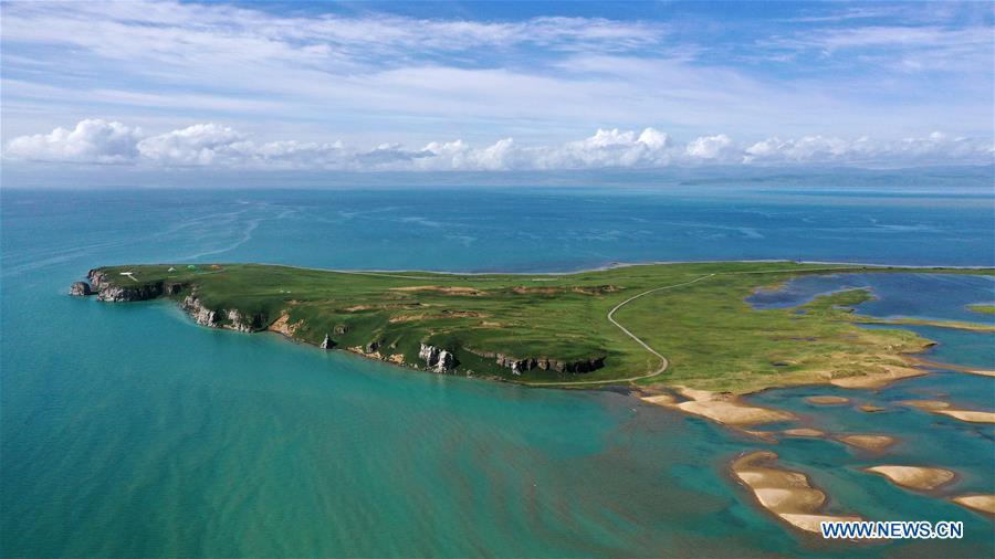 Aerial photo taken on July 10, 2020 shows a view of the Qinghai Lake in northwest China's Qinghai Province. (Xinhua/Zhang Hongxiang)